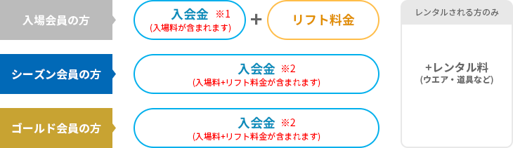 ※2 シーズン会員券・ゴールド会員券は入場料・リフト料金が含まれます。